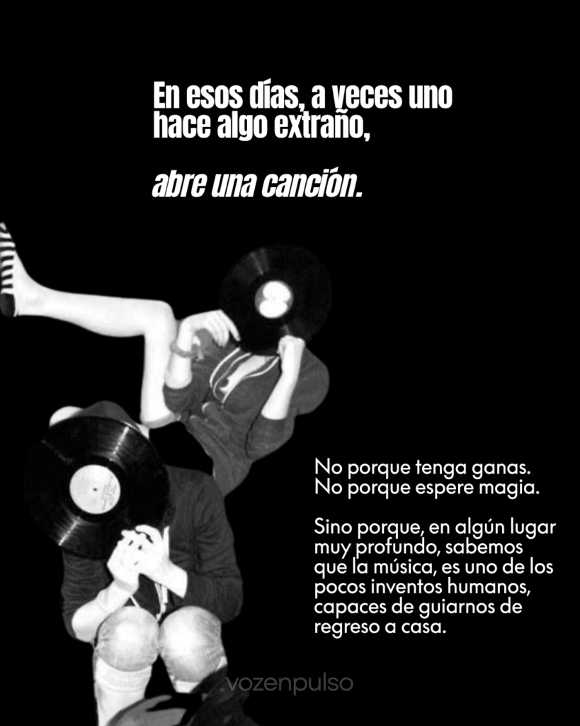 Está nota es una reflexión personal sobre cómo la música, las canciones y los sonidos creados por otros seres humanos pueden convertirse en un puente invisible entre emociones, pensamientos y momentos difíciles. Porque a veces una melodía logra decir lo que nosotros no sabemos explicar.